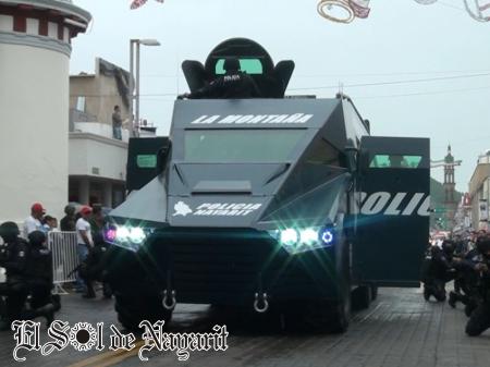 En el marco de los festejos de la conmemoración del 203 Aniversario de la Independencia de México, la Fiscalía General de Nayarit, presentó durante el tradicional desfile cívico-militar el camión blindado denominado La Montaña, mismo que supera en sus dimensiones a los conocidos como La Roca y La Piedra.