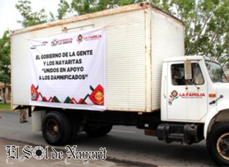 En apoyo de los miles de damnificados por el paso del huracán Manuel, este lunes el Gobernador del Estado de Nayarit, Roberto Sandoval Castañeda, dio el banderazo de salida a dos camiones con alimentos y artículos de primera necesidad para los damnificados del vecino estado de Sinaloa.