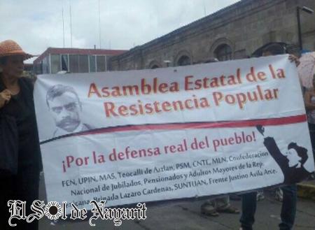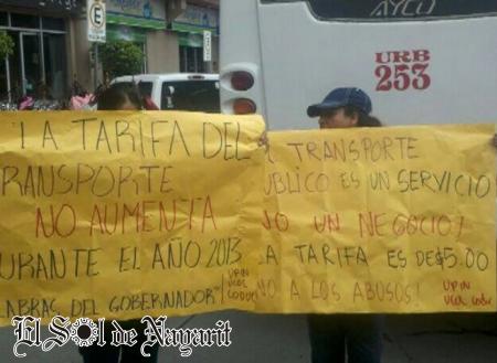 Este martes poco antes del mediodía, integrantes de la Asamblea Estatal de Resistencia Popular, cerraron y detuvieron camiones del transporte urbano en calle Puebla a la altura de la Presidencia de Tepic, como protesta al aumento de la tarifa, no existe acuerdo legal, aseguró uno de los representantes del movimiento.