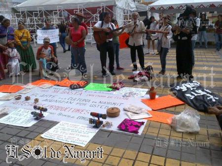 Los artesanos de las cinco culturas nayaritas, estamos manifestándonos ya que no han respetado los acuerdos, quiere que nos salgamos de éste espacio para ella poner una tienda ahí y cinco más en otros lugares, por eso nos giró una orden de desalojo, aseguró.
