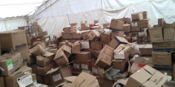 De acuerdo con la senadora, uniformes médicos y de quirófanos con la tela ya podrida por nunca haber sido entregados, asimismo materiales de curación también fueron localizados en la bodega.