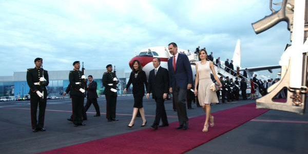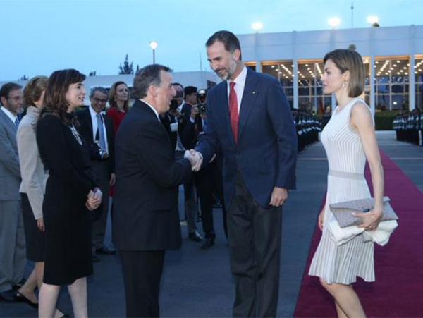 La realeza de española llegó acompañada del jefe de la Casa de su Majestad, el ministro Jaime Alfonsín; el secretario de Estado para Comercio de España, Jaime García Legaz y del ministro de Asuntos Exteriores y de Cooperación, Manuel García Margallo.