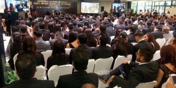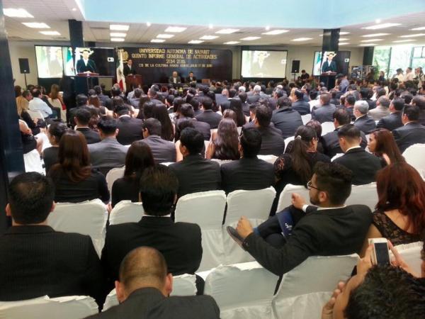 El pleno del H. Consejo General Universitario recibió el Quinto Informe General de Actividades de la Administración del actual rector de la UAN, ante la presencia del Gobernador del Estado, Roberto Sandoval Castañeda.