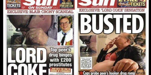 Las fotografías presentadas en la portada del diario The Sun exhiben a Sewel ingiriendo cocaína y acompañado de sexoservidoras.