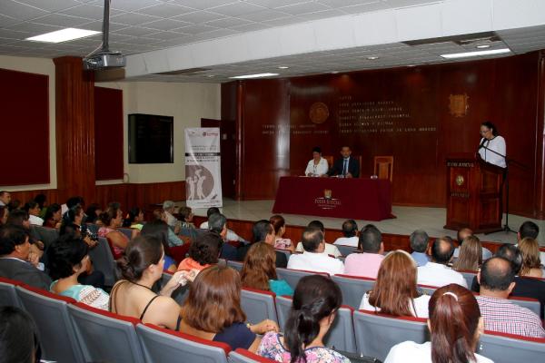 En representación de la señora Ana Lilia López de Sandoval, presidenta de DIF Nayarit, Zaira Rivera Veliz, explicó en las instalaciones del tribunal superior de justicia, que el foro va dirigido a la capacitación de los juzgados familiares, delegados de las procuradurías de los DIF de cada municipio, así como psicólogos, trabajadores sociales y abogados, donde podrán establecer un proceso de diálogo y aprendizaje recíproco.