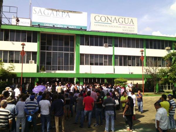 La mañana de este jueves un numero grupo de personas se dio cita a las afueras de las oficinas de la Delegación en Nayarit de la Comisión Nacional del Agua (Conagua), ubicadas sobre la Avenida Insurgentes, con la finalidad de manifestar su repudio ante el nombramiento del ex alcalde capitalino Héctor González Curiel como nuevo titular de la dependencia.