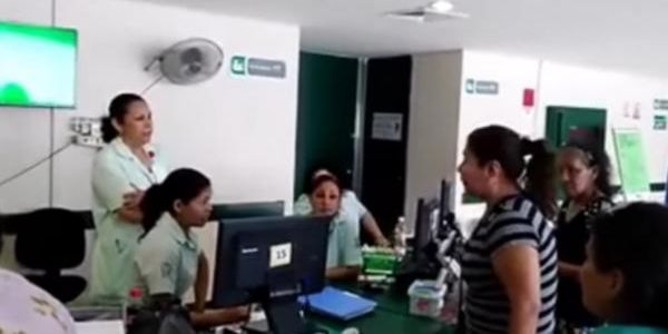 Las trabajadoras del IMSS le indican que tiene que ir a cierto lugar y la mujer les responde que ya lo hizo y que fue mandada ahí.
