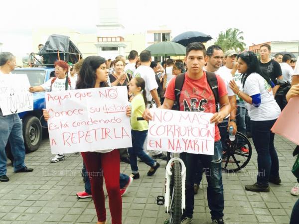 Alrededor de mil personas llegaron a Palacio de Gobierno para mostrar su rechazo al nombramiento del ex presidente municipal de Tepic, pues indican, se trata de una burla después del desfalco cometido al erario público durante su administración.