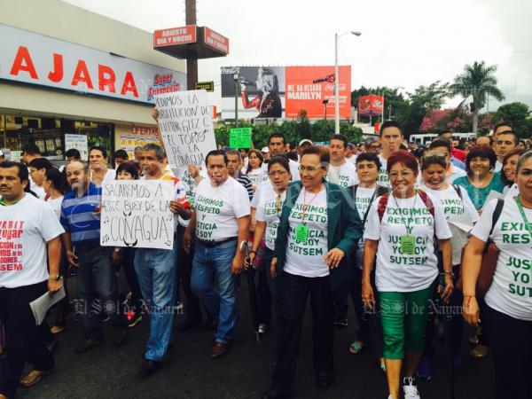 Además de estudiantes y ciudadanos en general, a la marcha se unió el Sindicato Único de Trabajadores al Servicio del Estado y Municipio (SUTSEM), liderados por Águeda Galicia.
