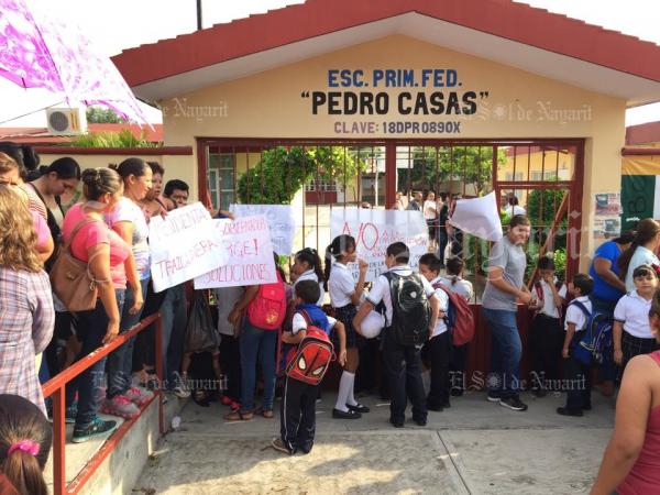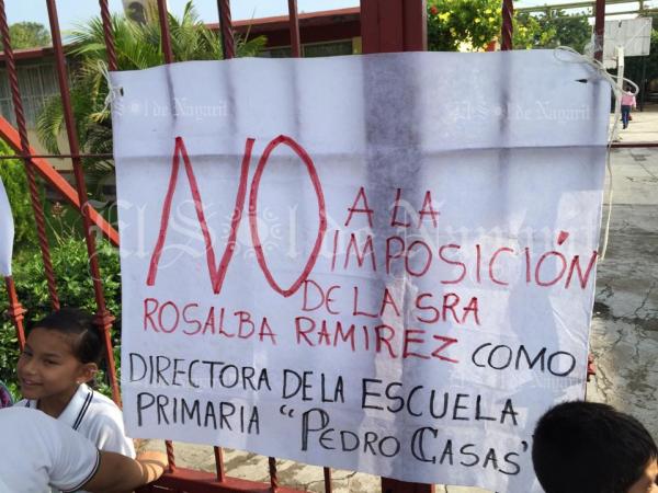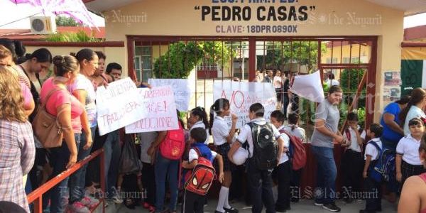 Padres de familia de la escuela primaria Pedro Casas, ubicada a la altura del puente de San Cayetano, en la colonia del mismo nombre, se manifestaron la mañana de este lunes para exigir la destitución de la directora del plantel, Rosalva Ramírez Tinoco, cuyo comportamiento describieron como prepotente y agresivo.