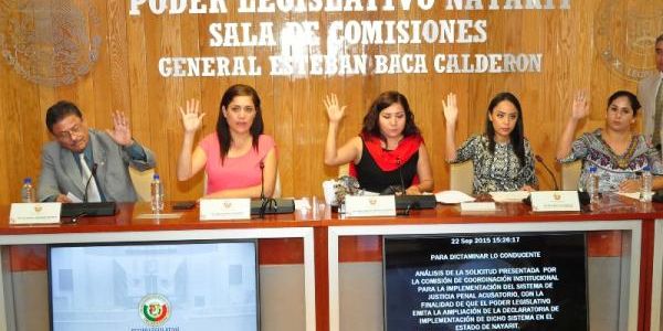 Con el propósito de dar certeza a la ejecución plena del nuevo sistema de justicia penal, en reunión de la Comisión de Justicia y Derechos Humanos de la Trigésima Primera Legislatura, fue aprobado por unanimidad el proyecto de decreto que contiene la ampliación de la Declaratoria de Implementación del Sistema de Justicia Penal Acusatorio en el Estado de Nayarit.