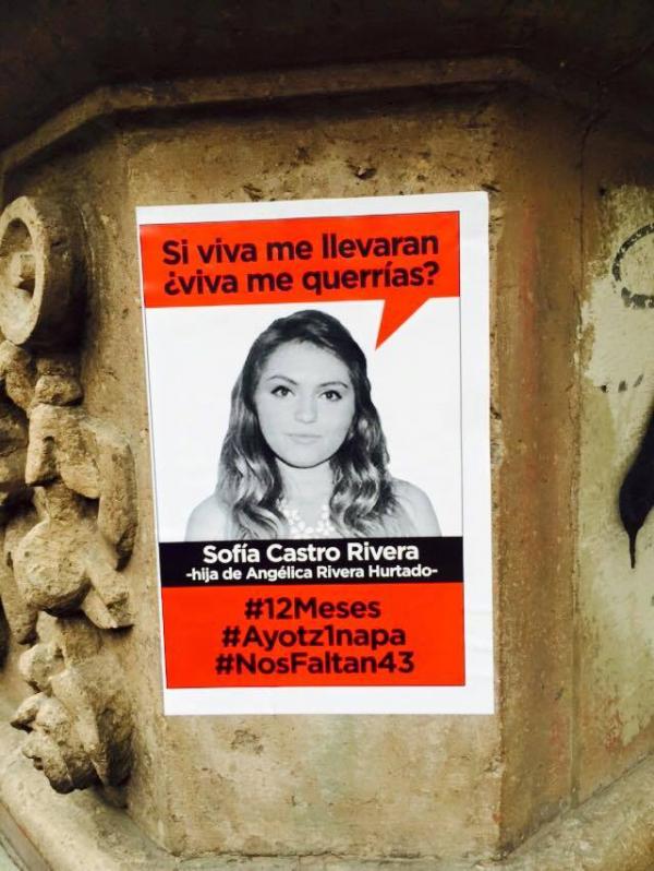 Se han viralizado en redes sociales carteles con las imágenes de los hijos e hijas de Enrique Peña Nieto, Angélica Rivera, Adela Micha y Joaquín López Dóriga con la leyenda Si viva me llevaran ¿vida me querrías, haciendo alusión a la consigna vivos se los llevaron, vivos los queremos.