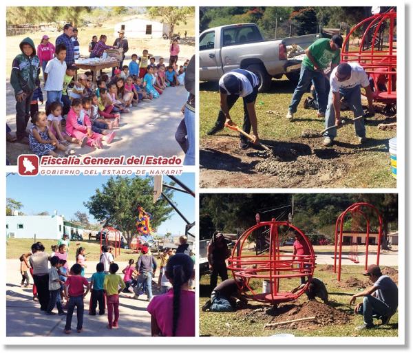Como parte del programa de Prevención del Delito, la Fiscalía General del Estado (FGE) instala juegos infantiles en escuelas, parques y canchas deportivas, en cumplimiento al Plan de Seguridad del Gobierno del Estado.