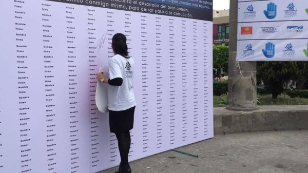 El evento inició poco después de la una de la tarde en la pérgola central de la plaza, en donde representantes y autoridades gubernamentales, grupos empresariales y universidades, así como promotores de esta campaña firmaron el acuerdo que pretende reducir los índices de corrupción en México.