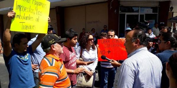 Cerca de las 10:00 de la mañana, los comerciantes establecidos bloquearon la Av. México de Tepic, a la altura de la calle Hidalgo, reclaman que debido al alto número de comercio ambulante, sus ventas han disminuido obligándolos incluso a despedir personal.