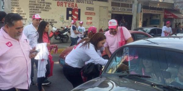 Primero saludó a transportistas y conductores que transitaron sobre el cruce de las avenidas Insurgentes y P. Sánchez para luego comenzar sus visitas casa por casa.