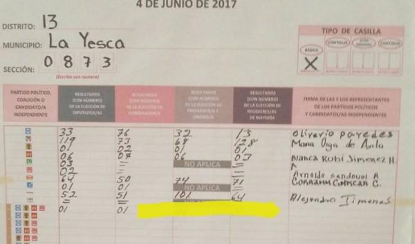 A través de un comunicado, se dio a conocer que en el La Yesca se instalaron un total de 18 casillas, de las cuales la casilla de la sección 873 correspondiente a la comunidad de Amatlán, tuvo varios errores al momento de hacer el conteo y anotar los resultados obtenidos por cada uno de los partidos políticos y candidatos, ya que en el acta se consigna que Morena solo obtuvo un voto, cuando la hoja de resultados fijada a las afueras de la casilla marca 101 votos a su favor.