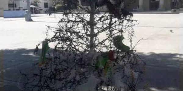 La mañana de este lunes amaneció en cenizas un árbol de Navidad montado en Chilpancingo, Guerrero, que conmemoraba a los 43 normalistas de Ayotzinapa desaparecidos en Iguala en el 2014.