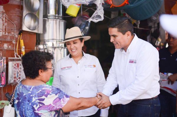 Su primera actividad comenzó en un recorrido junto a la candidata al senado por la coalición "Juntos Haremos Historia", Cora Cecilia, los que mantuvieron pláticas con los comerciantes de la zona centro en la cabecera municipal.