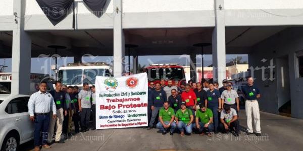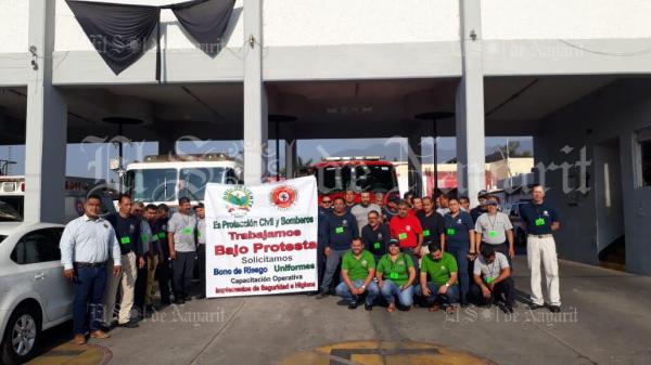 La mañana de este lunes elementos del cuerpo de Protección Civil y Bomberos de Nayarit se manifestaron en demanda de sus derechos laborales.