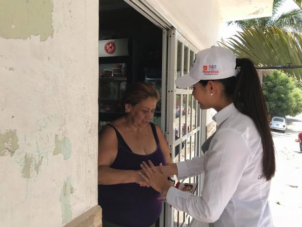 La mañana de este viernes Geraldine Ponce, candidata diputada federal por la coalición que integran Morena, PT y PES, recorrió las calles de la colonia Ojo de Agua, donde llevó sus propuestas a los habitantes de la zona, particularmente las alusivas al problema de la escasez de agua.
