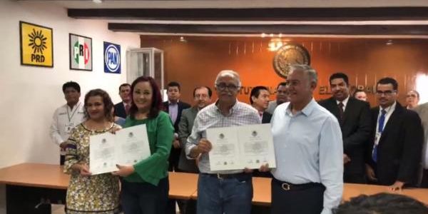 La mañana de este domingo el doctor Miguel Ángel Navarro Quintero y Cora Cecilia Pinedo, pertenecientes a la coalición Juntos Haremos Historia recibieron por parte del INE su constancia de mayoría al cebado de la República.