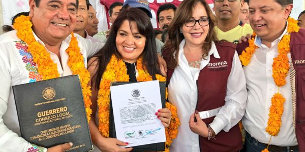 La Junta Local del Instituto Nacional Electoral (INE) del estado de Guerrero entregó este domingo la constancia de mayoría a los senadores electos al Senado de la República de esa entidad Nestora Salgado y Félix Salgado Macedonio.