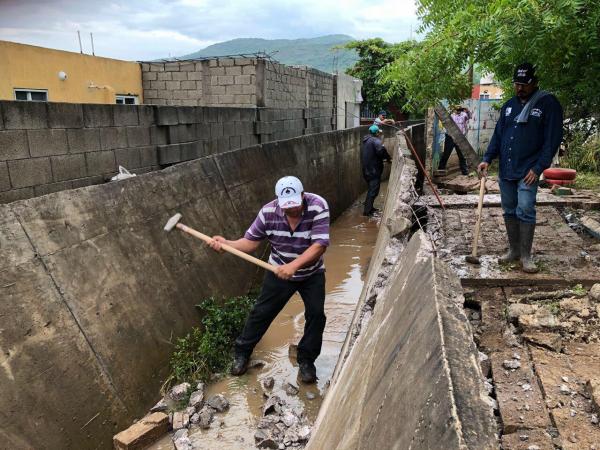 * Hasta la madrugada de hoy, Obras Públicas, Sanidad y Protección Civil trabajaron derrumbando muros y resguardando a familias afectadas