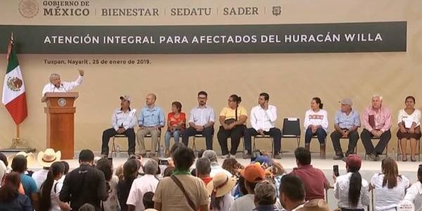 * Durante el evento, anunció finalmente el presidente que antes de que termine febrero se concluirá la entrega de apoyos a damnificados por el huracán "Willa".