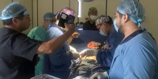 En el material se aprecia a los médicos operar a un paciente con el auxilio de un teléfono celular para iluminar el peligroso procedimiento.