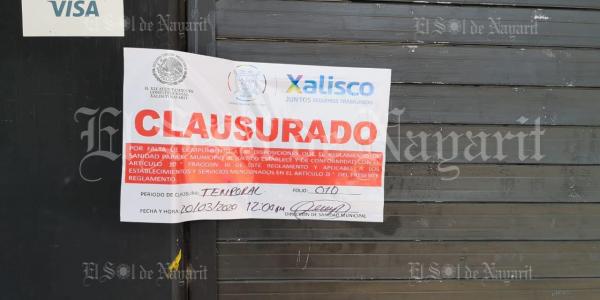 El Departamento de Sanidad Municipal de Xalisco clausuró bares y cantinas por no cumplir con las disposiciones del gobierno del estado sobre mantener cerrados dichos establecimientos.
