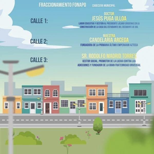 Semana la siguiente nomenclatura para algunas calles que solo estaban numeradas en dicho municipio, derivado de una propuesta realizada por un cronista municipal, avalada por la Comisión de Educación y Cultura ante Cabildo.