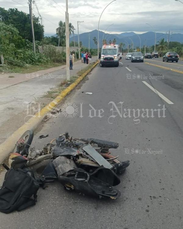 Este sábado por la tarde se registró un nuevo accidente en la carretera federal 200 Tepic-Vallarta, cerca de BucerÃas Nayarit, donde dos personas que circulaban en una motocicleta se derraparon y dicho vehÃculo terminó incendiándose. Los hechos fueron registrados en los carriles centrales d...