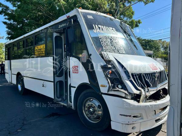 Se registró un accidente entre dos camiones urbanos este jueves sobre el Boulevard Luis Donaldo Colosio y la avenida Principal en la capital nayarita. Se trata de un camión de la ruta Jazmines con número 323 y uno de la ruta Progreso 4; señalan que el Jazmines circulaba con dirección al Cent...