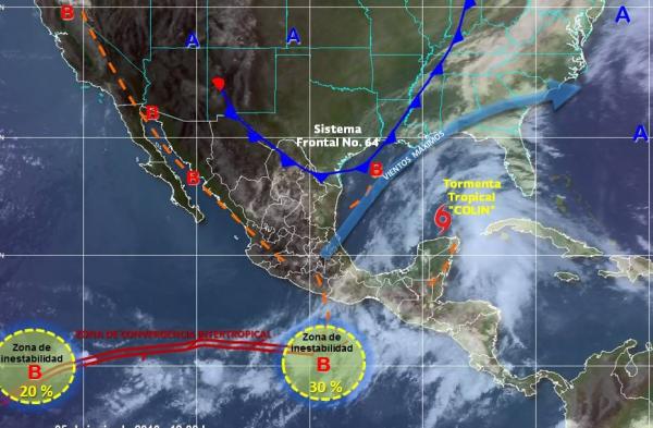 El Servicio Meteorológico Nacional (SMN) alertó que los desprendimiento nubosos de la tormenta tropical Colin en el Golfo de México provocarán lluvias muy fuertes con tormentas eléctricas y posibles granizadas en Yucatán y Quintana Roo, y lluvias fuertes en Campeche. La tormenta se localizar...
