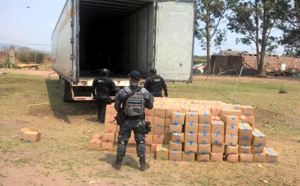 Elementos de la PolicÃa Federal en coordinación con autoridades del estado de Guanajuato, al efectuar un cateo en un predio ubicado a la altura del kilómetro 006+000 de la carretera (2180) Querétaro-León, tramo Irapuato-León, aseguraron diversos objetos entre los que se encontraba un semirremo...