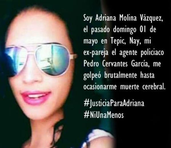 Las primeras horas de este miércoles dejó de existir Adriana Molina Vázquez, la joven de 19 años de edad que fuera brutalmente agredida por su ex pareja sentimental, un elemento de la PolicÃa Nayarit. Adriana permanecÃa en coma desde este domingo, cuando Pedro “N”, de 34 años de edad, e...