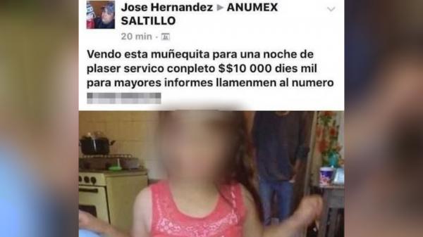 Este lunes en redes sociales llamó la atención un inusual anuncio publicado en un grupo de Facebook denominado Unumex Saltillo, donde una menor era ofrecida por la cantidad de 10 mil pesos por: “una noche de placer, servicio completo”. El anuncio de inmediato despertó la indignación de cien...