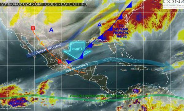 El frente frÃo número 52 se extenderá desde la costa oriental de Estados Unidos, hasta la PenÃnsula de Yucatán y el sureste del paÃs, y se asociará con un canal de baja presión y aire frÃo superior, generando potencial para la caÃda de aguanieve en zonas montañosas de Chihuahua y Durango,...