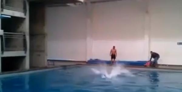 Fue difundido un video donde se observa el momento en el que el escolta del secretario de gobierno de Guanajuato, Antonio Salvador GarcÃa, muere ahogado tras lanzarse a la fosa de clavados de la ProcuradurÃa General de Justicia del Estado (PGJE). El accidente ocurrió el pasado 21 de marzo, per...