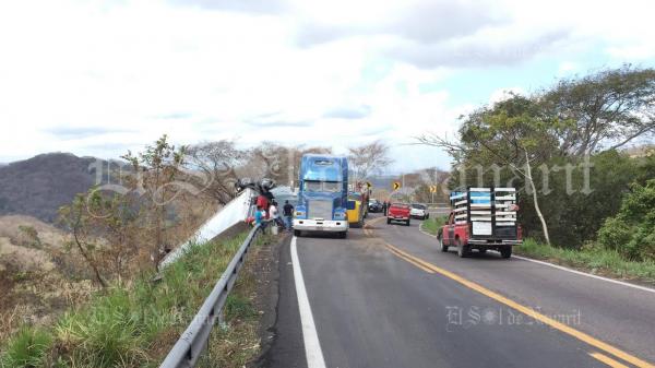 Un aparatoso accidente tuvo lugar la tarde de este viernes sobre la carretera federal número 15, Tepic Mazatlán, donde un tráiler terminó volcado. Fue a la altura del kilómetro 22+50, a unos metros del mirador del Águila, donde un pesado tráiler cargado de chile serrano, que se dirigía...