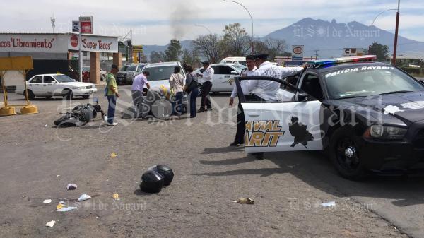 Dos personas lesionadas fue el saldo de un aparatoso choque ocurrido la mañana de este lunes en el carretero libramiento de Tepic. Fue a la altura de la colonia Miguel Hidalgo, frente a la gasolinera de la CTM, donde la motocicleta de la marca Bajaj, tipo pulsar, color negro, conducida por Ceci...