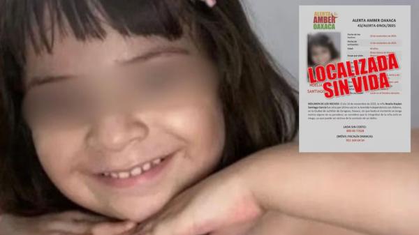 Las autoridades de Oaxaca informaron la localización del cuerpo sin vida de la pequeña Noelia de cuatro años de edad quien había sido reportada como desaparecida en el municipio de Juchitán de Zaragoza. El pasado 10 de noviembre, la menor y su madre Adilene "N" de 21 años salieron juntas de...