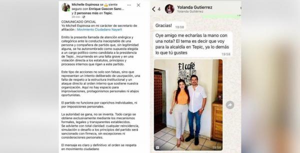 Se ha registrado confrontación abierta en el partido de Movimiento Ciudad (MC) en Nayarit, luego de que el Secretario de Afiliación de dicho partido, frenara públicamente las aspiraciones de Yolanda Gutiérrez, ex candidata al Senado por la coalición PRI-PAN y reciente adhesión de MC, tras habe...
