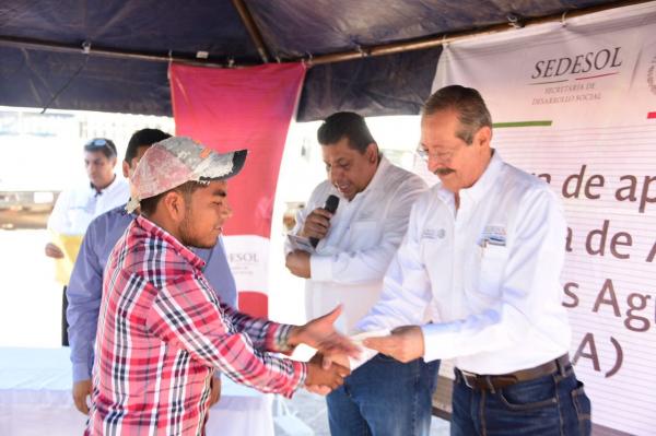Con el propósito de mejorar las condiciones de trabajo y hogares de jornaleros agrÃcolas que migran de otros estados a trabajar en el campo de Nayarit, la SecretarÃa de Desarrollo Social (SEDESOL) federal, entregó apoyo de arribos, becas escolares y albergues, beneficiando a 300 familias, la may...
