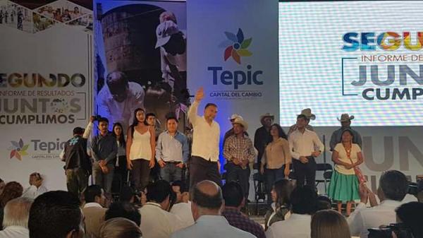 Miembros del Sindicato Único de Trabajadores al Servicio del Estado y Municipios (SUTSEM), se manifestaron en el informe de actividades del Presidente Municipal de BahÃa de Banderas, José Gómez. Los agremiados mostraron su inconformidad con pancartas que exigÃan el pago de las prestaciones ...