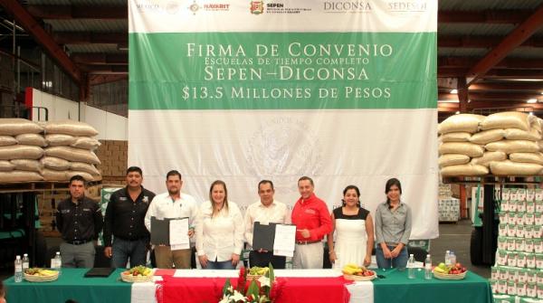 Tepic, 21 de septiembre de 2015.- En presencia del José Alberto Pérez Franco, Gerente Regional de la Sucursal Centro Diconsa, y de la delegada Federal de SecretarÃa de Desarrollo Social, Liliana Elizabeth Gómez Meza, Diconsa y los Servicios de Educación Pública del Estado de Nayarit (Sepen) su...