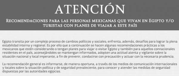 Tras el incidente en Egipto, donde ocho turistas mexicanos perdieron la vida en un ataque de elementos del ejército egipcio, la embajada de México en ese país emitió recomendaciones para quienes planeen viajar o se encuentren en ese país. Egipto transita por un complejo proceso de cambios ...