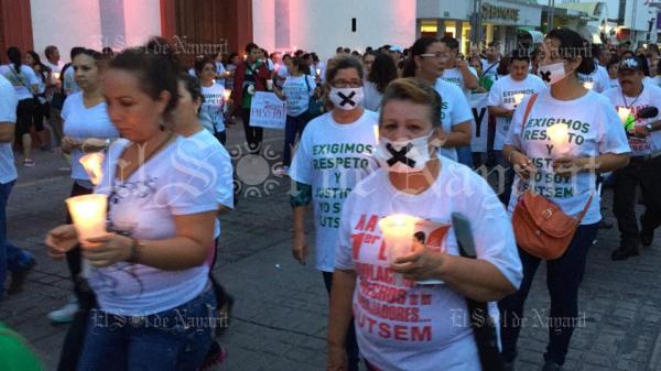 La tarde de este jueves, miles de integrantes del Sindicato Único de Trabajadores al Servicio del Estado y Municipio (SUTSEM), realizaron una marcha en silencio por la libertad de expresión. La manifestación inició a las 18:00 horas en la Avenida Allende y Juan Escutia, del centro de Tepic, h...