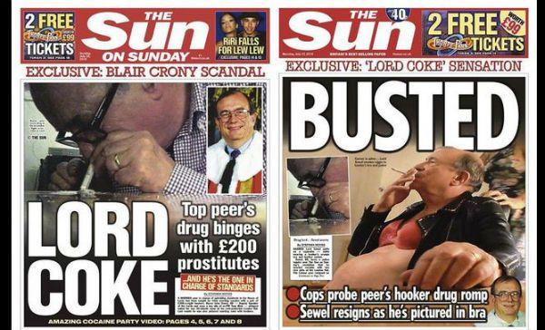 Luego de ser evidenciado por la prensa local en conductas reprobables, el vicepresidente de la Cámara de Lores del parlamento británico, John Sewel, presentó su renuncia. Las fotografÃas presentadas en la portada del diario The Sun exhiben a Sewel ingiriendo cocaÃna y acompañado de sexoserv...